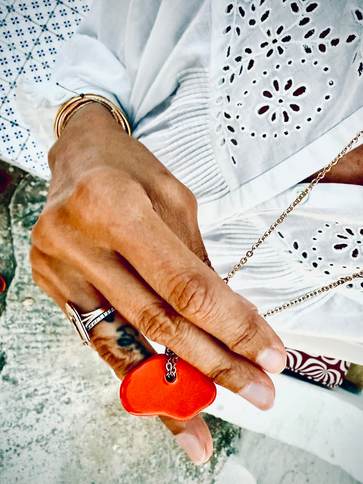 Collier Nuage ORANGE en Faïence Émaillée. Fabriqués à la main à Paris. Chaîne en acier inoxydable. 2 longueurs au choix (ras du cou 45 cm ou plus long 60 cm). Plus de 12 couleurs. 🌈☁️🌈