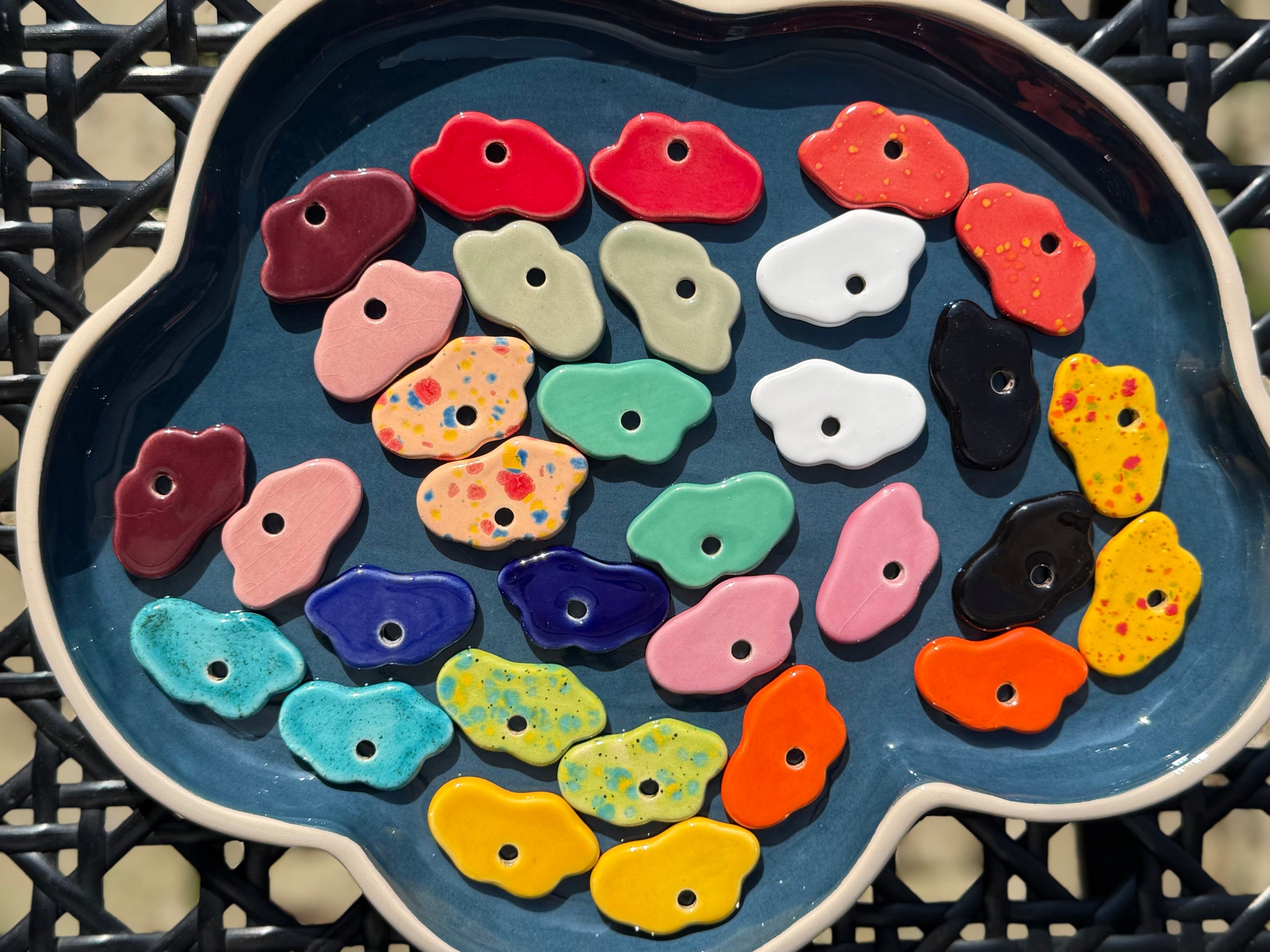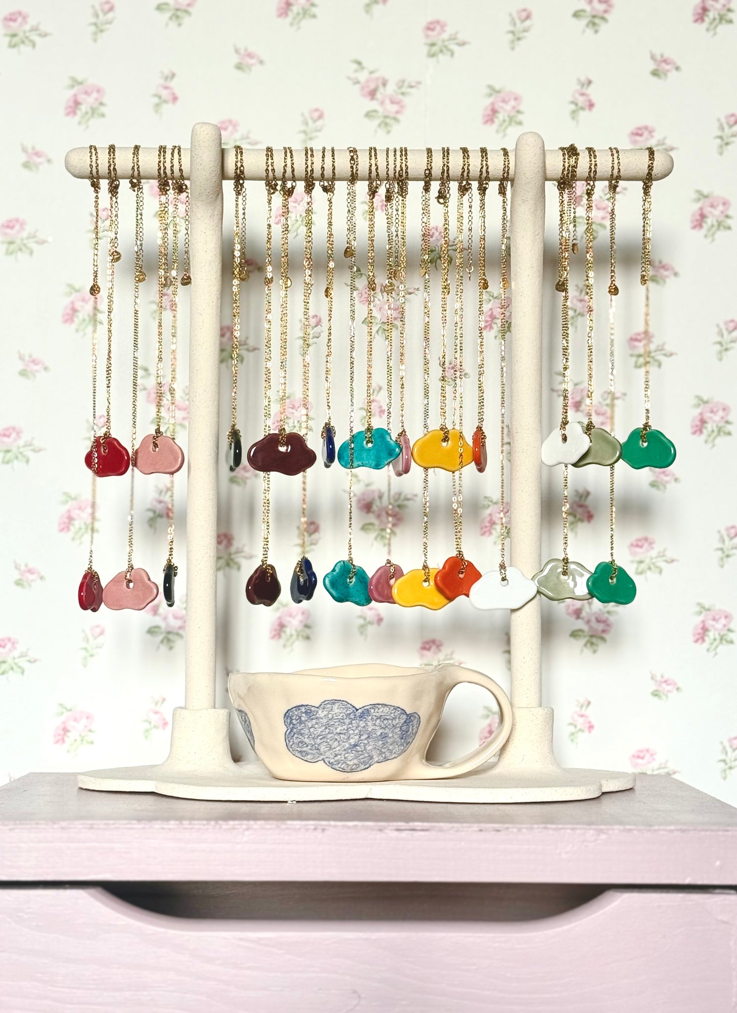 Collier Nuage VERT SAUGE en Faïence Émaillée. Fabriqués à la main à Paris. Chaîne en acier inoxydable. 2 longueurs au choix (ras du cou 45 cm ou plus long 60 cm). Plus de 12 couleurs. 🌈☁️🌈