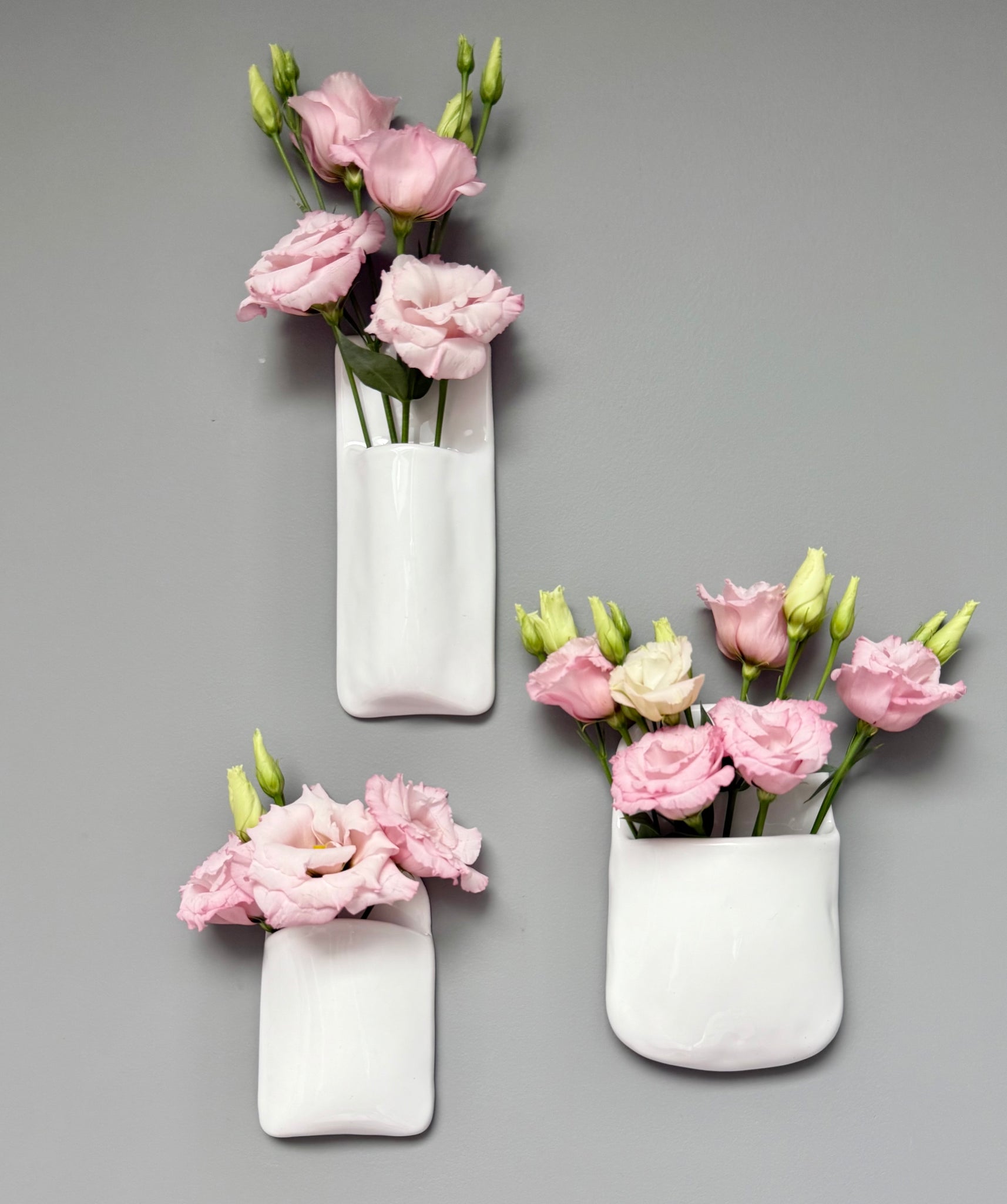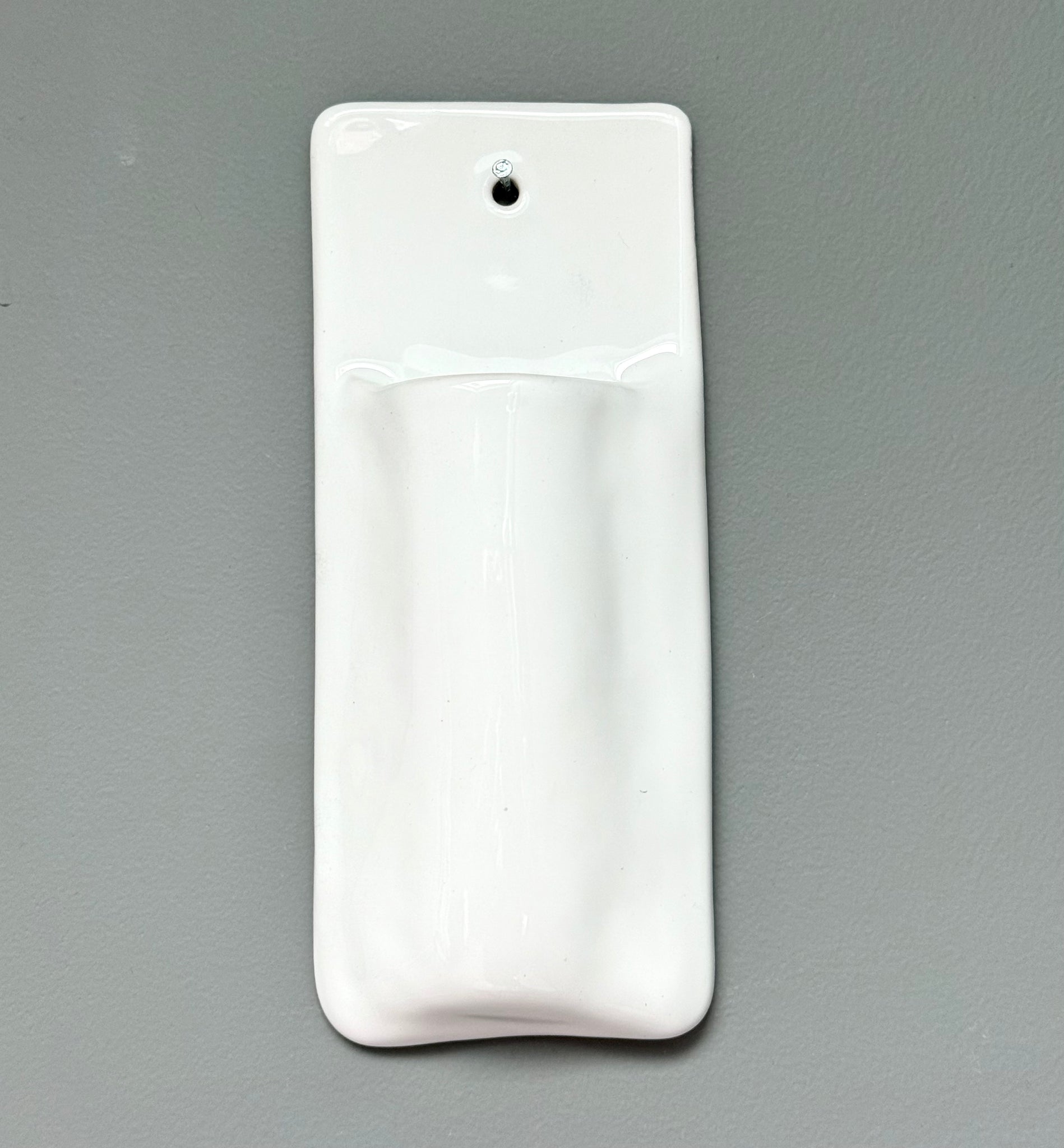 Long Vase mural en faience, fabriqué à la main à Paris. Émaille blanc brillant. Environ 17x7x3 cm. Dispo sur commande dans la couleur de votre choix. CAP Céramique Artisanale Parisienne.