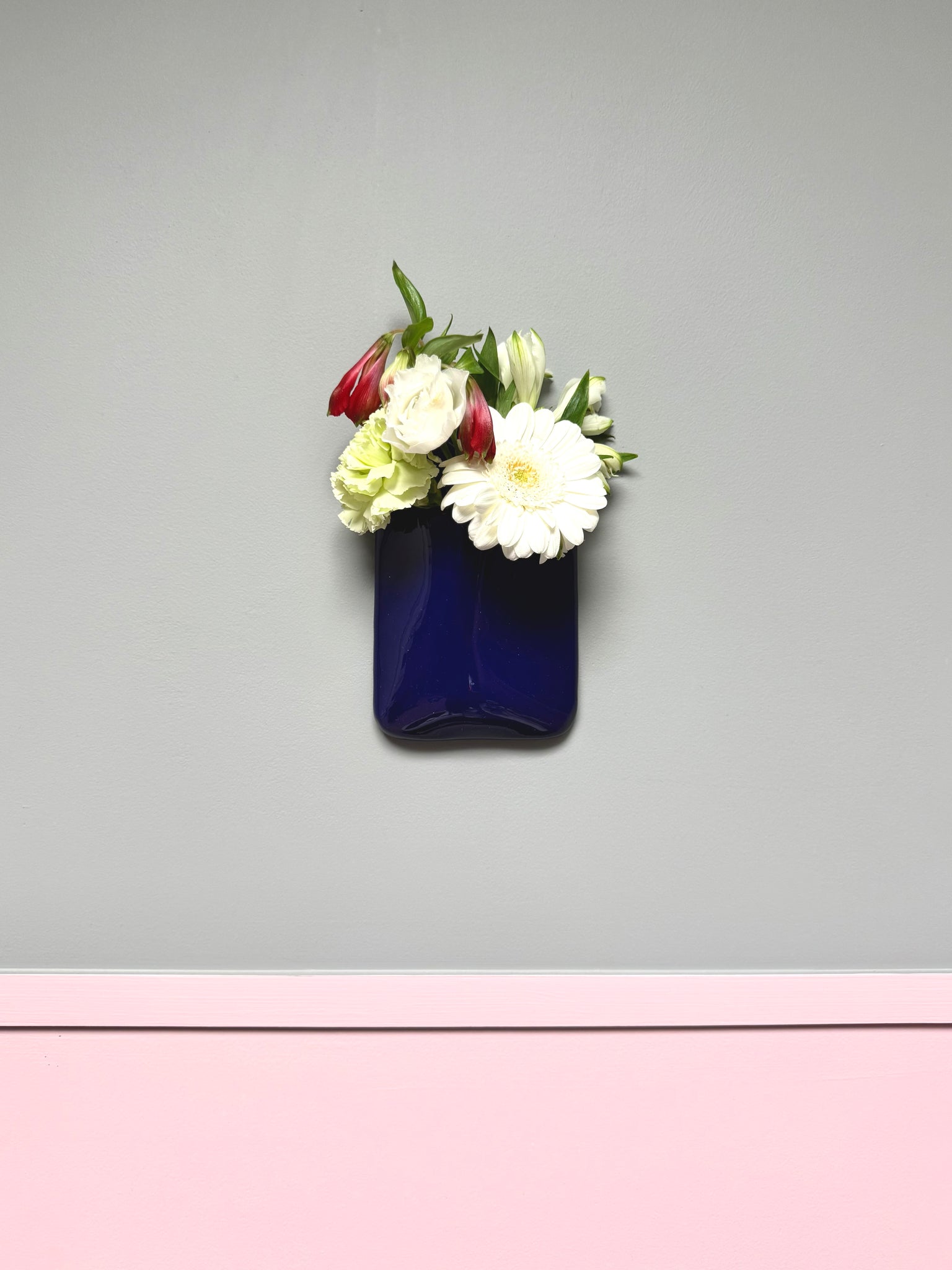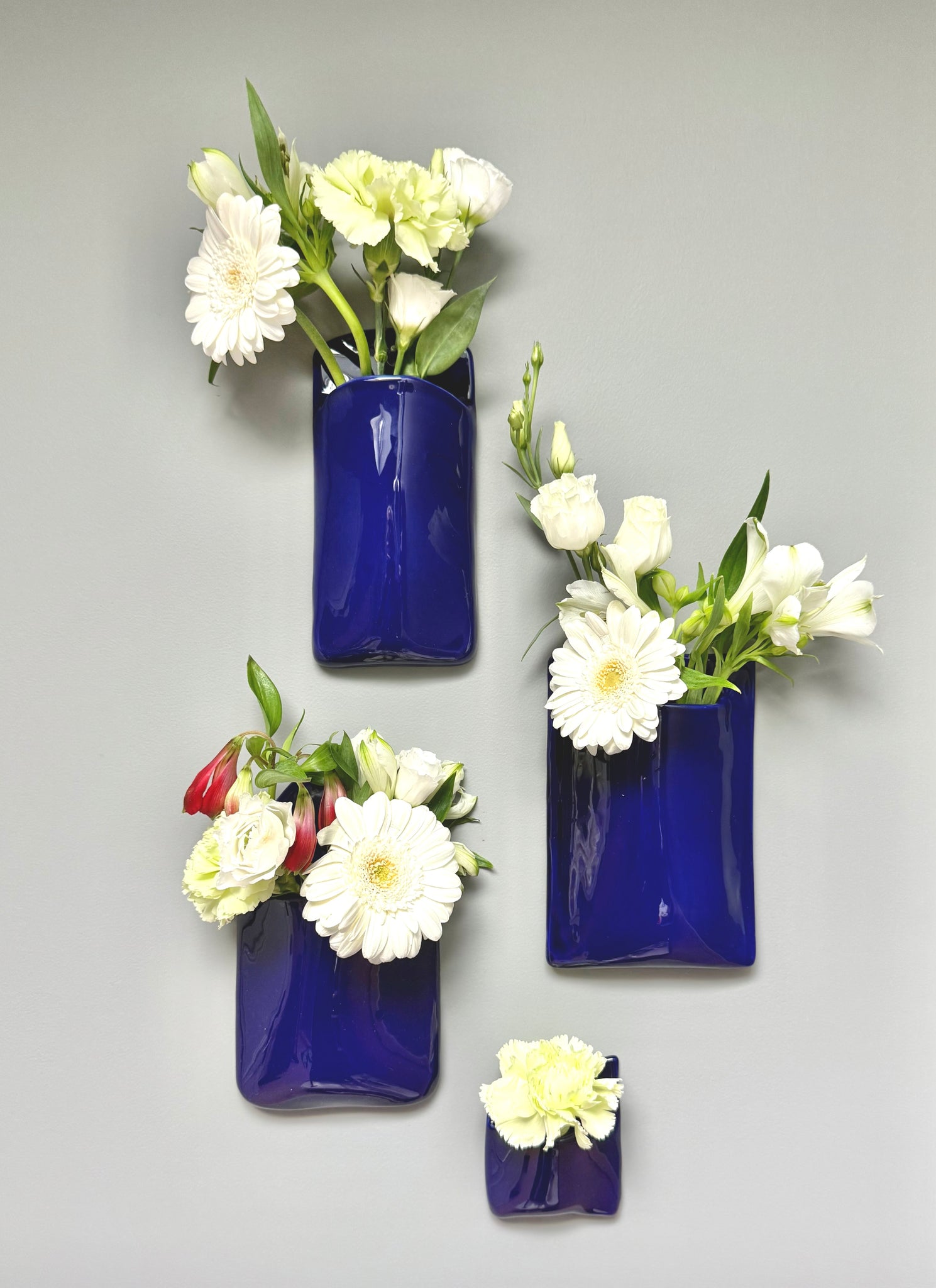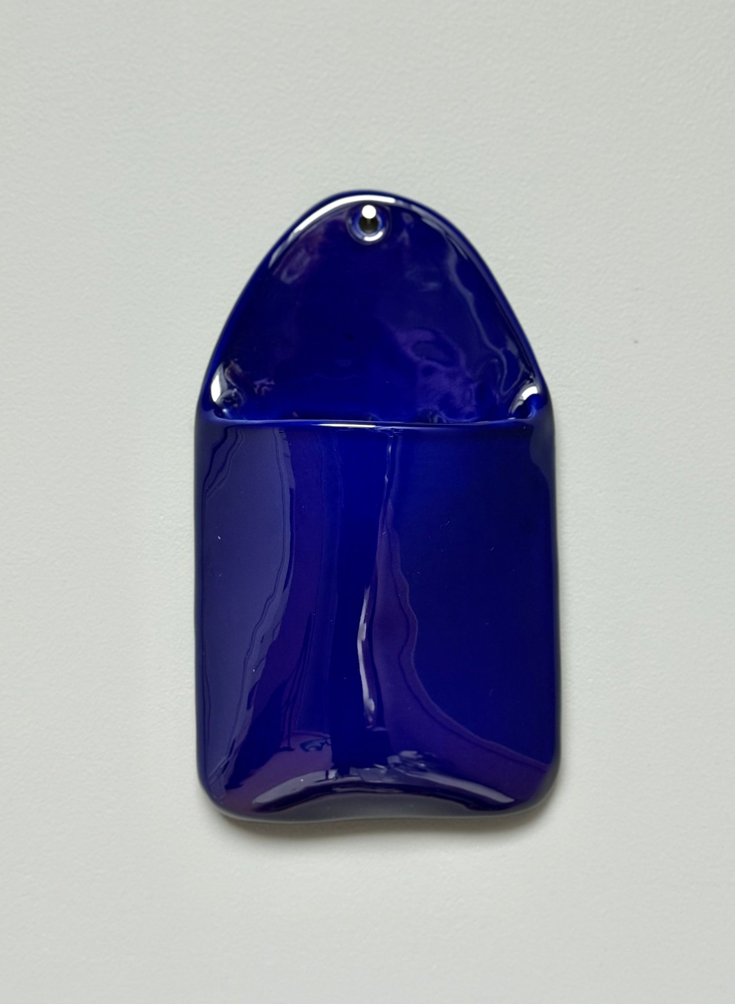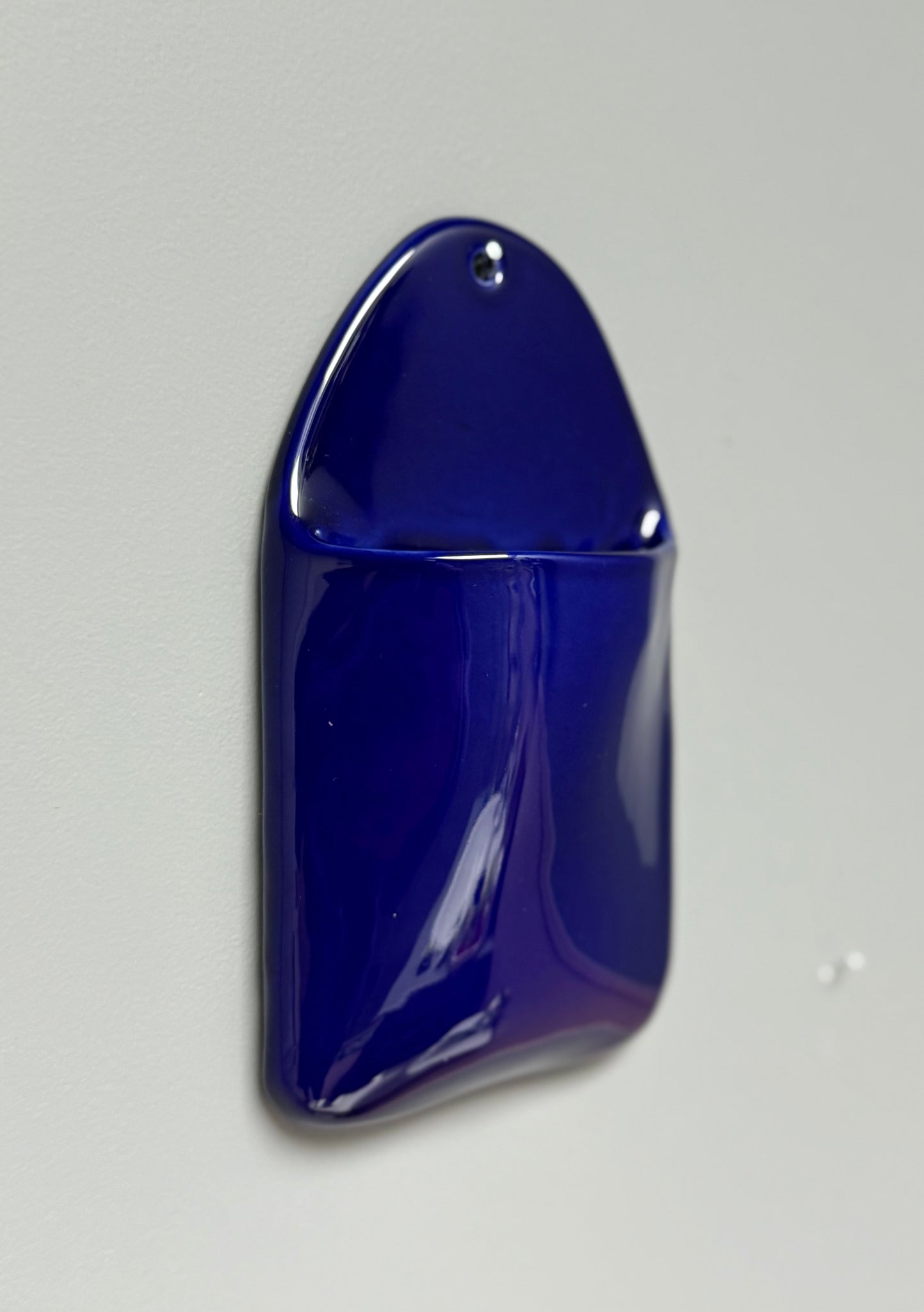 Vase mural en faience, fabriqué à la main à Paris. Émaille bleu marine. Environ 18 x 10,5 x 5 cm. Dispo sur commande dans la couleur de votre choix. CAP Céramique Artisanale Parisienne.